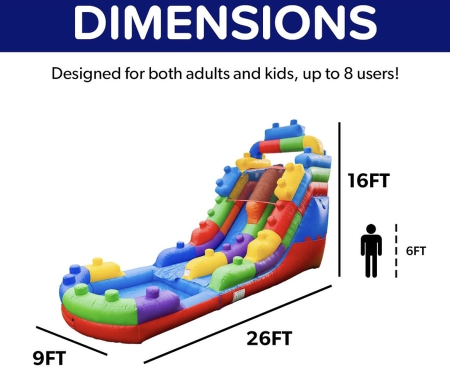 Bring the wow factor to your next celebration with our 26ft X 16ft Lego Land Slide, the ultimate attraction for parties and events of all kinds! This impressive slide stands 26 feet long, 16 feet tall, and 9 feet wide, making it a showstopper that delivers excitement for guests of all ages. Whether you're hosting a birthday party, a school carnival, a church event, or even a large commercial function, this slide is designed to provide endless entertainment and smiles. 🎉